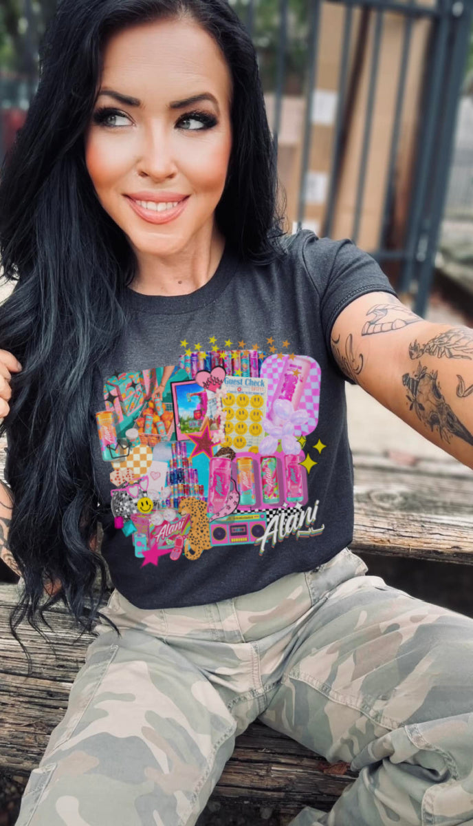 Indulge in your love for Energy Drinks with our Alani t-shirt. Featuring a playful collage design, this shirt is perfect for any fan. Quench your thirst for style and soda in one go!