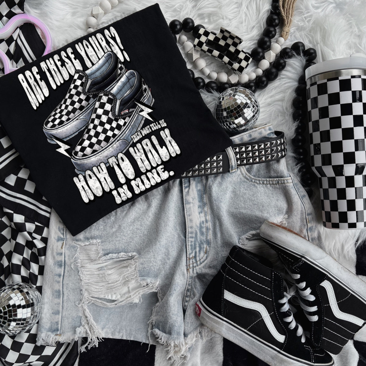 Step into a world of sass and edgy style with our "Are These Yours?" shirt. Featuring a playful shoe design and a witty phrase, this shirt is perfect for those who don't take crap from anyone.