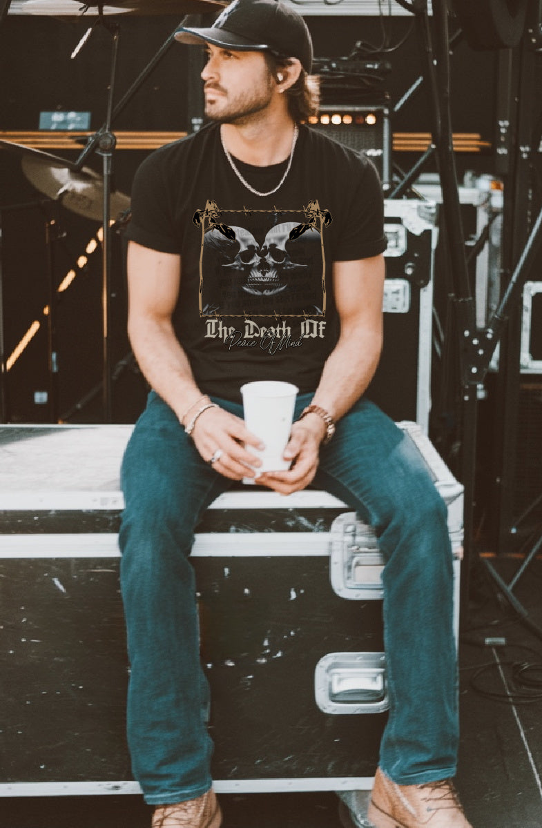 Introducing Peace of Mind, the ultimate shirt for those who embrace the death of peace of mind. Featuring a striking two skulls design, this blacked out shirt will add a little edge to your wardrobe. Keep calm and embrace the darkness with Peace of Mind.